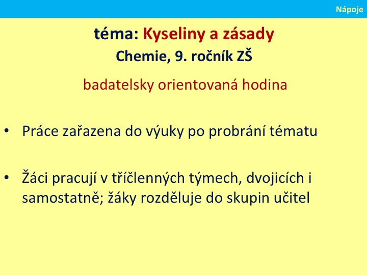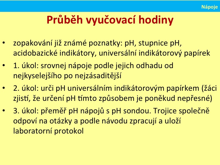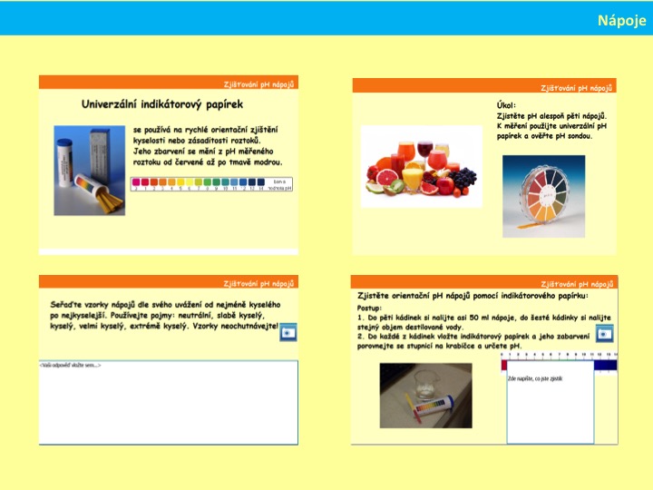 | Měření pH nápojů pasco senzory s využitím ntb; Badatelská metoda; Podpora mezipředmětových vztahů; Cílená podpora nadaných |