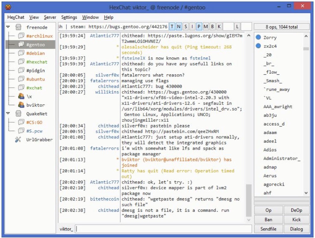 Náhled na spuštěnou IRC textovou komunikaci